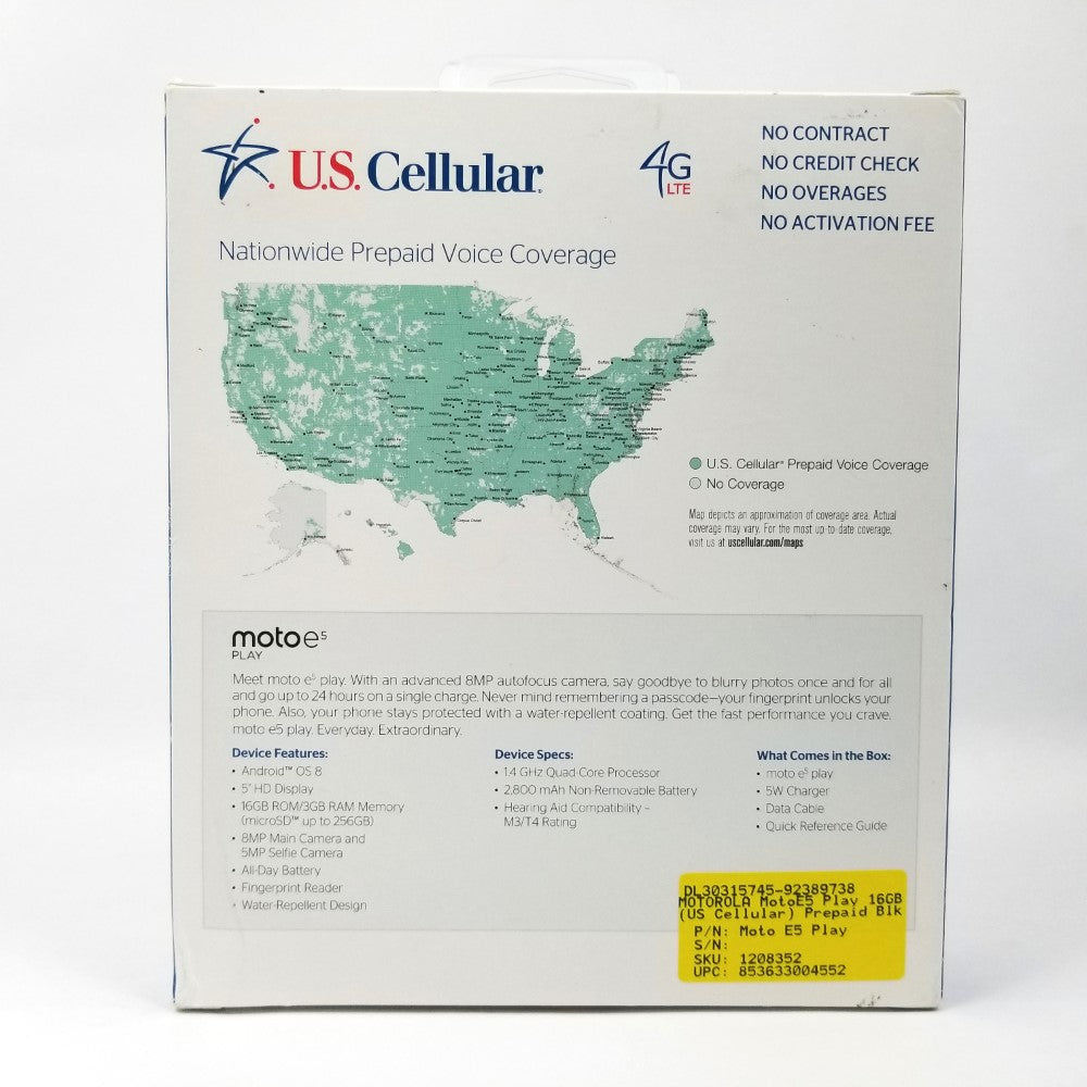 MOTOROLA Moto E5 Play (US Cellular) 16GB Prepaid Android Smartphone - Black