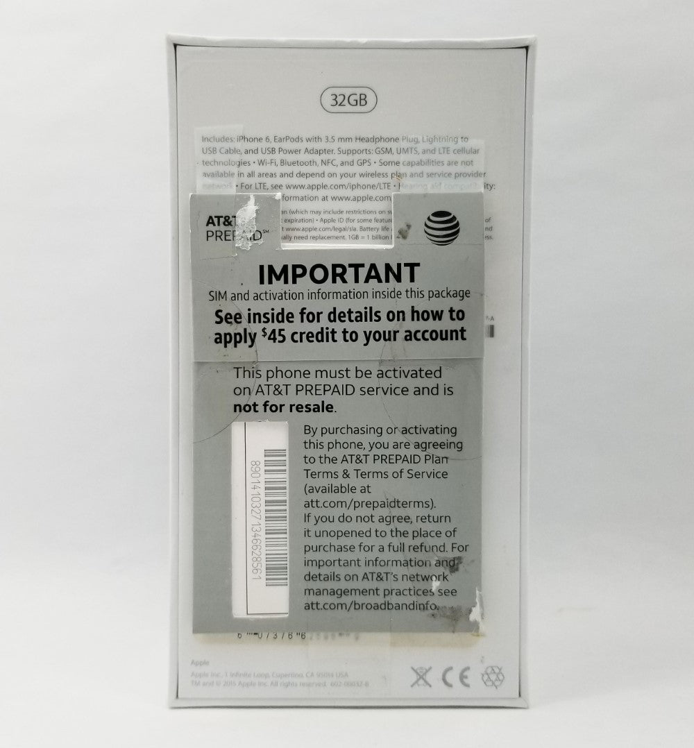 NEW!!! APPLE iPhone 6 4G LTE (AT&T) 32GB Prepaid Cell Phone - Space Gray